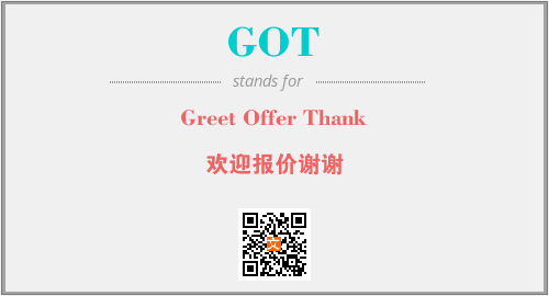 英文缩略词“GOT”经常作为“Greet Offer Thank”的英文缩写来使用,中文表示:“欢迎报价谢谢”。本文将详细介绍英文缩写词GOT所代表英文单词,其对应的中文拼音、详细解释以及在英语中的流行度。此外,还有关于缩略词GOT的分类、应用领域及相关应用示例等。