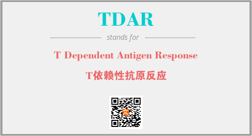 上述内容是“T Dependent Antigen Response”作为“TDAR”的缩写,解释为“T依赖性抗原反应”时的信息,以及英文缩略词TDAR所代表的英文单词,其对应的中文拼音、详细解释以及在英文中的流行度和相关分类、应用领域及应用示例等。
