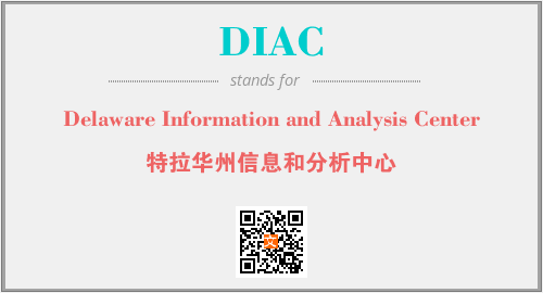 上述内容是“Delaware Information and Analysis Center”作为“DIAC”的缩写,解释为“特拉华州信息和分析中心”时的信息,以及英文缩略词DIAC所代表的英文单词,其对应的中文拼音、详细解释以及在英文中的流行度和相关分类、应用领域及应用示例等。