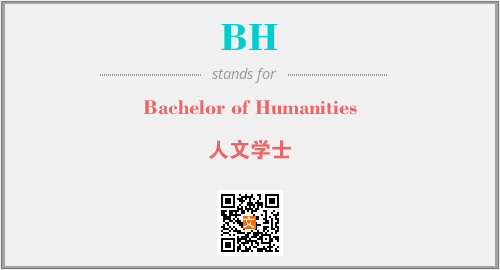 上述内容是“Bachelor of Humanities”作为“BH”的缩写,解释为“人文学士”时的信息,以及英文缩略词BH所代表的英文单词,其对应的中文拼音、详细解释以及在英文中的流行度和相关分类、应用领域及应用示例等。