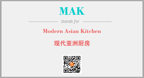 上述内容是“Modern Asian Kitchen”作为“MAK”的缩写,解释为“现代亚洲厨房”时的信息,以及英文缩略词MAK所代表的英文单词,其对应的中文拼音、详细解释以及在英文中的流行度和相关分类、应用领域及应用示例等。