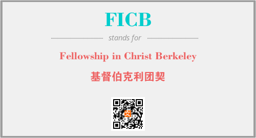 上述内容是“Fellowship in Christ Berkeley”作为“FICB”的缩写,解释为“基督伯克利团契”时的信息,以及英文缩略词FICB所代表的英文单词,其对应的中文拼音、详细解释以及在英文中的流行度和相关分类、应用领域及应用示例等。