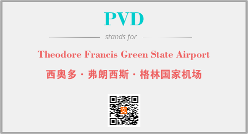 上述内容是“Theodore Francis Green State Airport”作为“PVD”的缩写,解释为“西奥多·弗朗西斯·格林国家机场”时的信息,以及英文缩略词PVD所代表的英文单词,其对应的中文拼音、详细解释以及在英文中的流行度和相关分类、应用领域及应用示例等。
