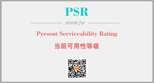 上述内容是“Present Serviceability Rating”作为“PSR”的缩写,解释为“当前可用性等级”时的信息,以及英文缩略词PSR所代表的英文单词,其对应的中文拼音、详细解释以及在英文中的流行度和相关分类、应用领域及应用示例等。
