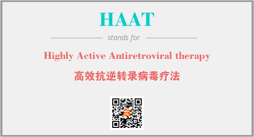 上述内容是“Highly Active Antiretroviral therapy”作为“HAAT”的缩写,解释为“高效抗逆转录病毒疗法”时的信息,以及英文缩略词HAAT所代表的英文单词,其对应的中文拼音、详细解释以及在英文中的流行度和相关分类、应用领域及应用示例等。