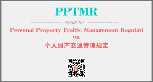 以上为Personal Property Traffic Management Regulation英文缩略词PPTMR的中文解释,以及该英文缩写在英语的流行度、分类和应用领域方面的信息。