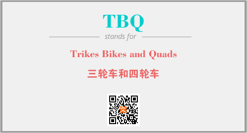 英文缩略词“TBQ”经常作为“Trikes Bikes and Quads”的英文缩写来使用,中文表示:“三轮车和四轮车”。本文将详细介绍英文缩写词TBQ所代表英文单词,其对应的中文拼音、详细解释以及在英语中的流行度。此外,还有关于缩略词TBQ的分类、应用领域及相关应用示例等。