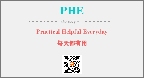英文缩略词“PHE”经常作为“Practical Helpful Everyday”的英文缩写来使用,中文表示:“每天都有用”。本文将详细介绍英文缩写词PHE所代表英文单词,其对应的中文拼音、详细解释以及在英语中的流行度。此外,还有关于缩略词PHE的分类、应用领域及相关应用示例等。