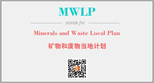 上述内容是“Minerals and Waste Local Plan”作为“MWLP”的缩写,解释为“矿物和废物当地计划”时的信息,以及英文缩略词MWLP所代表的英文单词,其对应的中文拼音、详细解释以及在英文中的流行度和相关分类、应用领域及应用示例等。