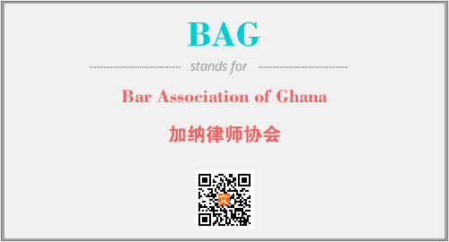 英文缩略词“BAG”经常作为“Bar Association of Ghana”的英文缩写来使用,中文表示:“加纳律师协会”。本文将详细介绍英文缩写词BAG所代表英文单词,其对应的中文拼音、详细解释以及在英语中的流行度。此外,还有关于缩略词BAG的分类、应用领域及相关应用示例等。