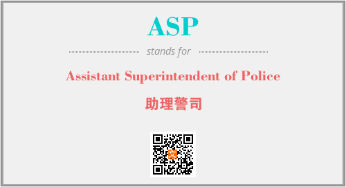 英文缩略词“ASP”经常作为“Assistant Superintendent of Police”的英文缩写来使用,中文表示:“助理警司”。本文将详细介绍英文缩写词ASP所代表英文单词,其对应的中文拼音、详细解释以及在英语中的流行度。此外,还有关于缩略词ASP的分类、应用领域及相关应用示例等。
