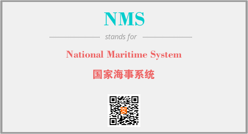 上述内容是“National Maritime System”作为“NMS”的缩写,解释为“国家海事系统”时的信息,以及英文缩略词NMS所代表的英文单词,其对应的中文拼音、详细解释以及在英文中的流行度和相关分类、应用领域及应用示例等。