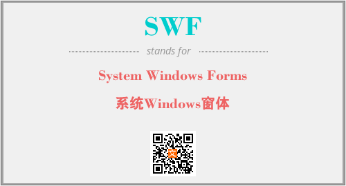英文缩略词“SWF”经常作为“System Windows Forms”的英文缩写来使用,中文表示:“系统Windows窗体”。本文将详细介绍英文缩写词SWF所代表英文单词,其对应的中文拼音、详细解释以及在英语中的流行度。此外,还有关于缩略词SWF的分类、应用领域及相关应用示例等。