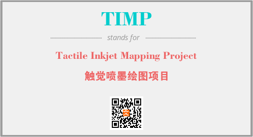 上述内容是“Tactile Inkjet Mapping Project”作为“TIMP”的缩写,解释为“触觉喷墨绘图项目”时的信息,以及英文缩略词TIMP所代表的英文单词,其对应的中文拼音、详细解释以及在英文中的流行度和相关分类、应用领域及应用示例等。