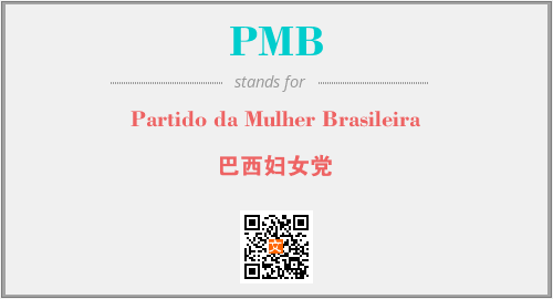 英文缩略词“PMB”经常作为“Partido da Mulher Brasileira”的英文缩写来使用,中文表示:“巴西妇女党”。本文将详细介绍英文缩写词PMB所代表英文单词,其对应的中文拼音、详细解释以及在英语中的流行度。此外,还有关于缩略词PMB的分类、应用领域及相关应用示例等。