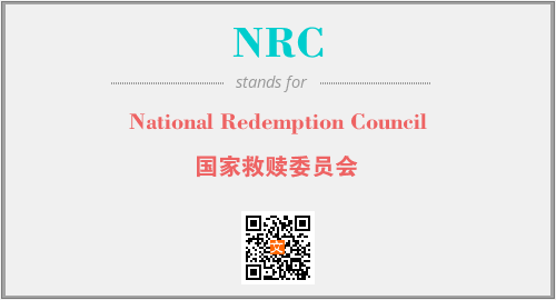 上述内容是“National Redemption Council”作为“NRC”的缩写,解释为“国家救赎委员会”时的信息,以及英文缩略词NRC所代表的英文单词,其对应的中文拼音、详细解释以及在英文中的流行度和相关分类、应用领域及应用示例等。