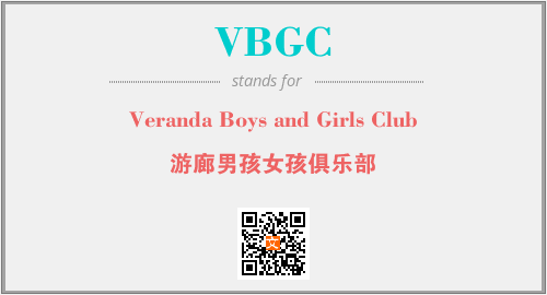 英文缩略词“VBGC”经常作为“Veranda Boys and Girls Club”的英文缩写来使用,中文表示:“游廊男孩女孩俱乐部”。本文将详细介绍英文缩写词VBGC所代表英文单词,其对应的中文拼音、详细解释以及在英语中的流行度。此外,还有关于缩略词VBGC的分类、应用领域及相关应用示例等。