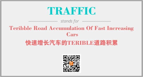 上述内容是“Teribble Road Accumulation Of Fast Increasing Cars”作为“TRAFFIC”的缩写,解释为“快速增长汽车的TERIBLE道路积累”时的信息,以及英文缩略词TRAFFIC所代表的英文单词,其对应的中文拼音、详细解释以及在英文中的流行度和相关分类、应用领域及应用示例等。