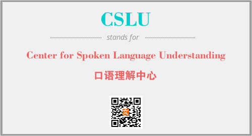 上述内容是“Center for Spoken Language Understanding”作为“CSLU”的缩写,解释为“口语理解中心”时的信息,以及英文缩略词CSLU所代表的英文单词,其对应的中文拼音、详细解释以及在英文中的流行度和相关分类、应用领域及应用示例等。