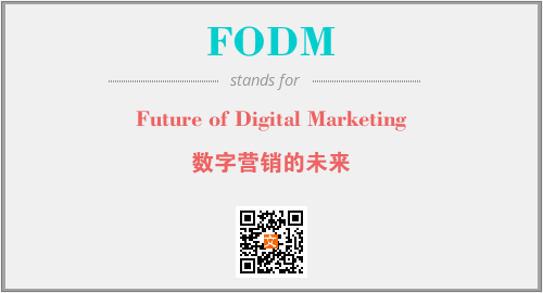 上述内容是“Future of Digital Marketing”作为“FODM”的缩写,解释为“数字营销的未来”时的信息,以及英文缩略词FODM所代表的英文单词,其对应的中文拼音、详细解释以及在英文中的流行度和相关分类、应用领域及应用示例等。