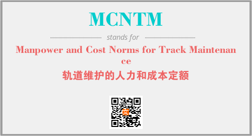 上述内容是“Manpower and Cost Norms for Track Maintenance”作为“MCNTM”的缩写,解释为“轨道维护的人力和成本定额”时的信息,以及英文缩略词MCNTM所代表的英文单词,其对应的中文拼音、详细解释以及在英文中的流行度和相关分类、应用领域及应用示例等。
