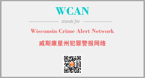 上述内容是“Wisconsin Crime Alert Network”作为“WCAN”的缩写,解释为“威斯康星州犯罪警报网络”时的信息,以及英文缩略词WCAN所代表的英文单词,其对应的中文拼音、详细解释以及在英文中的流行度和相关分类、应用领域及应用示例等。