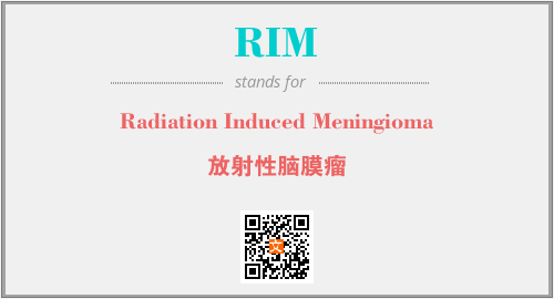 英文缩略词“RIM”经常作为“Radiation Induced Meningioma”的英文缩写来使用,中文表示:“放射性脑膜瘤”。本文将详细介绍英文缩写词RIM所代表英文单词,其对应的中文拼音、详细解释以及在英语中的流行度。此外,还有关于缩略词RIM的分类、应用领域及相关应用示例等。