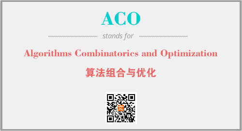 英文缩略词“ACO”经常作为“Algorithms Combinatorics and Optimization”的英文缩写来使用,中文表示:“算法组合与优化”。本文将详细介绍英文缩写词ACO所代表英文单词,其对应的中文拼音、详细解释以及在英语中的流行度。此外,还有关于缩略词ACO的分类、应用领域及相关应用示例等。