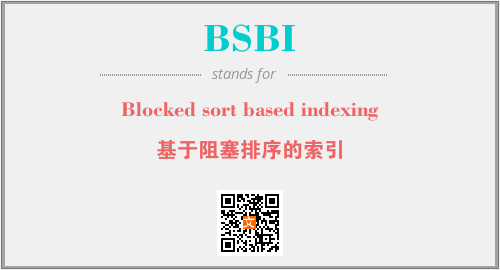 上述内容是“Blocked sort based indexing”作为“BSBI”的缩写,解释为“基于阻塞排序的索引”时的信息,以及英文缩略词BSBI所代表的英文单词,其对应的中文拼音、详细解释以及在英文中的流行度和相关分类、应用领域及应用示例等。