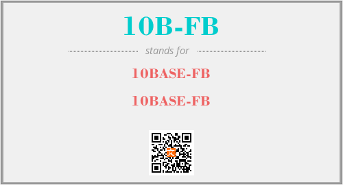 英文缩略词“10B-FB”经常作为“10BASE-FB”的英文缩写来使用,中文表示:“10BASE-FB”。本文将详细介绍英文缩写词10B-FB所代表英文单词,其对应的中文拼音、详细解释以及在英语中的流行度。此外,还有关于缩略词10B-FB的分类、应用领域及相关应用示例等。