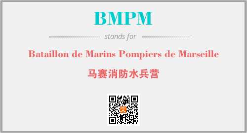 英文缩略词“BMPM”经常作为“Bataillon de Marins Pompiers de Marseille”的英文缩写来使用,中文表示:“马赛消防水兵营”。本文将详细介绍英文缩写词BMPM所代表英文单词,其对应的中文拼音、详细解释以及在英语中的流行度。此外,还有关于缩略词BMPM的分类、应用领域及相关应用示例等。