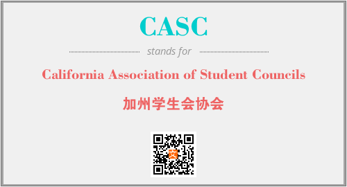 上述内容是“California Association of Student Councils”作为“CASC”的缩写,解释为“加州学生会协会”时的信息,以及英文缩略词CASC所代表的英文单词,其对应的中文拼音、详细解释以及在英文中的流行度和相关分类、应用领域及应用示例等。