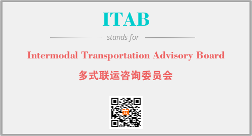 英文缩略词“ITAB”经常作为“Intermodal Transportation Advisory Board”的英文缩写来使用,中文表示:“多式联运咨询委员会”。本文将详细介绍英文缩写词ITAB所代表英文单词,其对应的中文拼音、详细解释以及在英语中的流行度。此外,还有关于缩略词ITAB的分类、应用领域及相关应用示例等。