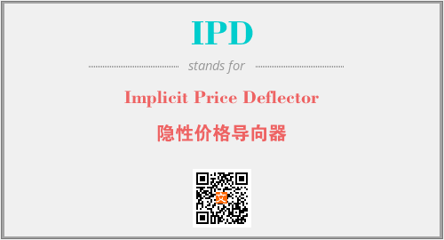 英文缩略词“IPD”经常作为“Implicit Price Deflector”的英文缩写来使用,中文表示:“隐性价格导向器”。本文将详细介绍英文缩写词IPD所代表英文单词,其对应的中文拼音、详细解释以及在英语中的流行度。此外,还有关于缩略词IPD的分类、应用领域及相关应用示例等。