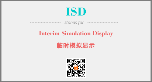 上述内容是“Interim Simulation Display”作为“ISD”的缩写,解释为“临时模拟显示”时的信息,以及英文缩略词ISD所代表的英文单词,其对应的中文拼音、详细解释以及在英文中的流行度和相关分类、应用领域及应用示例等。