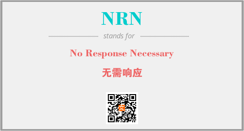 英文缩略词“NRN”经常作为“No Response Necessary”的英文缩写来使用,中文表示:“无需响应”。本文将详细介绍英文缩写词NRN所代表英文单词,其对应的中文拼音、详细解释以及在英语中的流行度。此外,还有关于缩略词NRN的分类、应用领域及相关应用示例等。