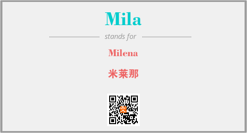上述内容是“Milena”作为“Mila”的缩写,解释为“米莱那”时的信息,以及英文缩略词Mila所代表的英文单词,其对应的中文拼音、详细解释以及在英文中的流行度和相关分类、应用领域及应用示例等。