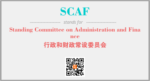 英文缩略词“SCAF”经常作为“Standing Committee on Administration and Finance”的英文缩写来使用,中文表示:“行政和财政常设委员会”。本文将详细介绍英文缩写词SCAF所代表英文单词,其对应的中文拼音、详细解释以及在英语中的流行度。此外,还有关于缩略词SCAF的分类、应用领域及相关应用示例等。