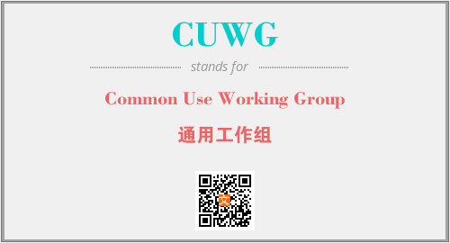 英文缩略词“CUWG”经常作为“Common Use Working Group”的英文缩写来使用,中文表示:“通用工作组”。本文将详细介绍英文缩写词CUWG所代表英文单词,其对应的中文拼音、详细解释以及在英语中的流行度。此外,还有关于缩略词CUWG的分类、应用领域及相关应用示例等。