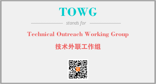 上述内容是“Technical Outreach Working Group”作为“TOWG”的缩写,解释为“技术外联工作组”时的信息,以及英文缩略词TOWG所代表的英文单词,其对应的中文拼音、详细解释以及在英文中的流行度和相关分类、应用领域及应用示例等。