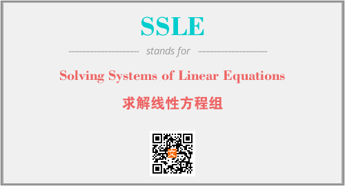 上述内容是“Solving Systems of Linear Equations”作为“SSLE”的缩写,解释为“求解线性方程组”时的信息,以及英文缩略词SSLE所代表的英文单词,其对应的中文拼音、详细解释以及在英文中的流行度和相关分类、应用领域及应用示例等。