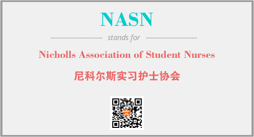 上述内容是“Nicholls Association of Student Nurses”作为“NASN”的缩写,解释为“尼科尔斯实习护士协会”时的信息,以及英文缩略词NASN所代表的英文单词,其对应的中文拼音、详细解释以及在英文中的流行度和相关分类、应用领域及应用示例等。