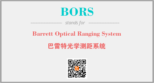 上述内容是“Barrett Optical Ranging System”作为“BORS”的缩写,解释为“巴雷特光学测距系统”时的信息,以及英文缩略词BORS所代表的英文单词,其对应的中文拼音、详细解释以及在英文中的流行度和相关分类、应用领域及应用示例等。