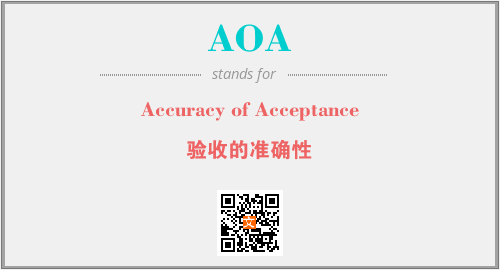 上述内容是“Accuracy of Acceptance”作为“AOA”的缩写,解释为“验收的准确性”时的信息,以及英文缩略词AOA所代表的英文单词,其对应的中文拼音、详细解释以及在英文中的流行度和相关分类、应用领域及应用示例等。