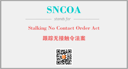以上为Stalking No Contact Order Act英文缩略词SNCOA的中文解释,以及该英文缩写在英语的流行度、分类和应用领域方面的信息。
