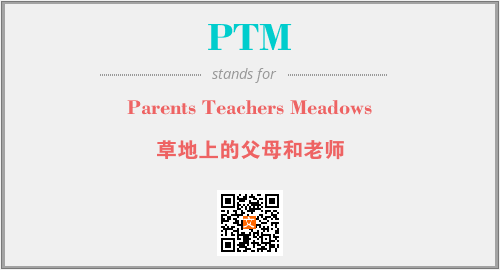 英文缩略词“PTM”经常作为“Parents Teachers Meadows”的英文缩写来使用,中文表示:“草地上的父母和老师”。本文将详细介绍英文缩写词PTM所代表英文单词,其对应的中文拼音、详细解释以及在英语中的流行度。此外,还有关于缩略词PTM的分类、应用领域及相关应用示例等。