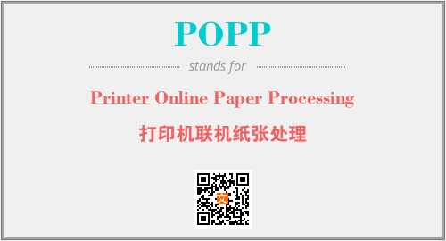 以上为Printer Online Paper Processing英文缩略词POPP的中文解释,以及该英文缩写在英语的流行度、分类和应用领域方面的信息。