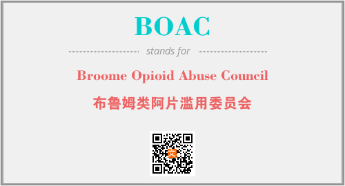 英文缩略词“BOAC”经常作为“Broome Opioid Abuse Council”的英文缩写来使用,中文表示:“布鲁姆类阿片滥用委员会”。本文将详细介绍英文缩写词BOAC所代表英文单词,其对应的中文拼音、详细解释以及在英语中的流行度。此外,还有关于缩略词BOAC的分类、应用领域及相关应用示例等。