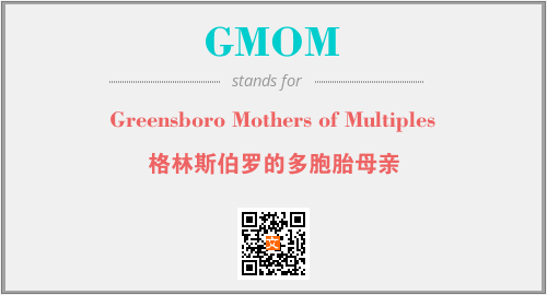 上述内容是“Greensboro Mothers of Multiples”作为“GMOM”的缩写,解释为“格林斯伯罗的多胞胎母亲”时的信息,以及英文缩略词GMOM所代表的英文单词,其对应的中文拼音、详细解释以及在英文中的流行度和相关分类、应用领域及应用示例等。