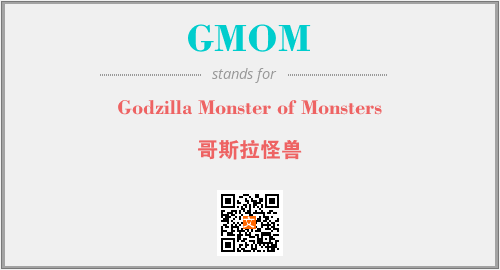 英文缩略词“GMOM”经常作为“Godzilla Monster of Monsters”的英文缩写来使用,中文表示:“哥斯拉怪兽”。本文将详细介绍英文缩写词GMOM所代表英文单词,其对应的中文拼音、详细解释以及在英语中的流行度。此外,还有关于缩略词GMOM的分类、应用领域及相关应用示例等。
